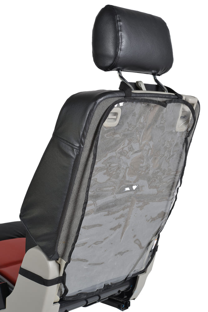 A DEFENDER ülés háttámla védő kitűnő választás, ha szeretnéd autód háttámláját megóvni a gyerekek lábának okozta kopástól és szennyeződéstől. A védő átlátszó PVC + nylon anyagból készült, 60 x 42 cm méretben, így tökéletesen illeszkedik az autóülésekhez. A rögzítés egyszerű és stabil: a Velcro és az elasztikus szalagok segítségével pillanatok alatt felszerelhető. Nem csak hasznos, de strapabíró és könnyen tisztítható is. A fekete szín pedig elegáns megjelenést kölcsönöz az autónak, miközben diszkréten védi az ülés háttámláját.
