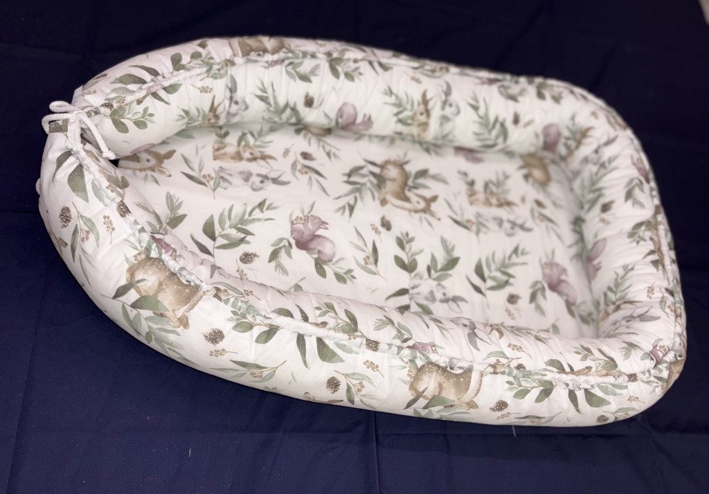 A 50x75 cm-es babafészek egy kompakt, újszülöttek számára tervezett fekvőbetét, amely a biztonságos pihenést és az anyaméh ölelő érzését utánozza.