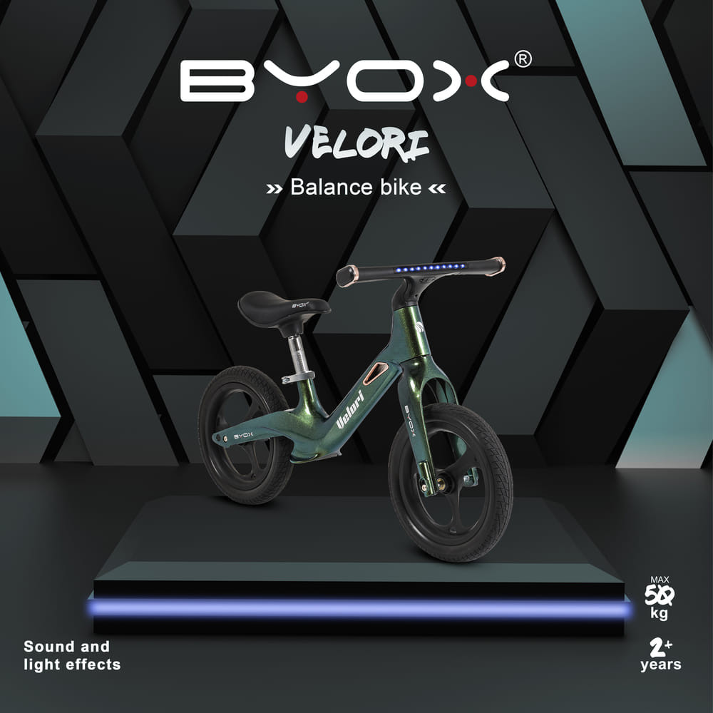 A biztonság, a kényelem és a mozgás örömének szem előtt tartásával tervezett Velori, Byox futóbicikli tökéletes választás a kis kalandorok számára. Főbb jellemzők: - Alkalmas 2 év feletti gyermekek számára - akár 50 kg-os terhelésnek is ellenáll. - Stabil, mégis könnyű, korrózióálló konstrukció - könnyű kezelhetőséget biztosít - Magnézium ötvözetből készült - Állítható puha ülés- az ülésmagasság állítható a reteszelő mechanizmuson keresztül - Zenélőpanel és kormányfények - minden utazást szórakoztató élménnyé tesznek - Pumpás gumiabroncsok- elnyelik a rezgéseket, elnyelik az ütéseket és sima, kényelmes utazást biztosítanak minden felületen A Velorival minden utazás egy olyan élmény, amely önbizalmat és a mozgás szeretetét fejleszti.