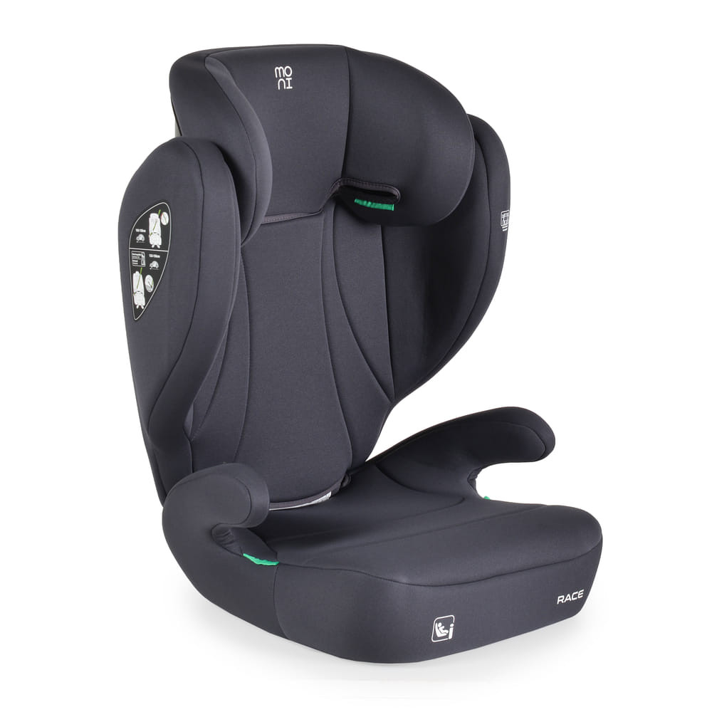 A Moni RACE autósülés 100-150 cm magasságú gyermekek számára készült, és a legújabb R129/i-Size biztonsági szabványnak megfelelően lett kifejlesztve.