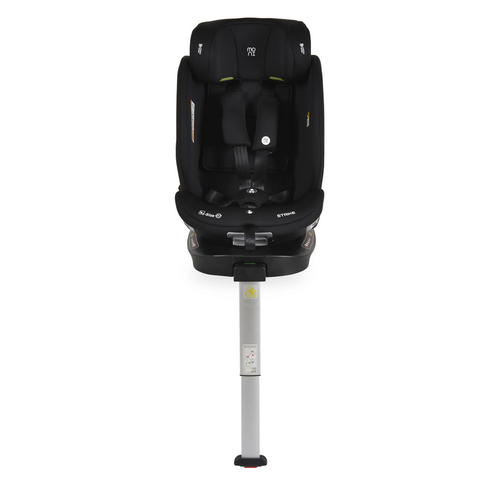 A Strike by Moni egy multifunkcionális autósülés, amelyet úgy terveztek, hogy biztonságot és kényelmet nyújtson a csecsemőkor első hónapjaitól egészen a gyermekkor végéig. A 40–150 cm magas gyermekek számára (kb. születéstől 12 éves korig) alkalmas Strike megfelel az R129/i-Size előírásoknak, és a legújabb technológiákat ötvözi a prémium minőségű kivitelezéssel. 3 használati mód: • 40–105 cm – háttal a menetiránynak, 5 pontos övvel, támasztólábbal és ISOFIX rendszerrel. • 76–105 cm – menetiránynak megfelelően, 5 pontos övvel, támasztólábbal és ISOFIX rendszerrel. • 100–150 cm – az autó 3 pontos biztonsági övével, ISOFIX-szel vagy anélkül (a jármű konfigurációjától függően). Ebben a módban a támasztólábat nem használják. Főbb jellemzők: • 360°-os elforgatás egy kézzel – megkönnyíti a gyermek behelyezését és az irány megváltoztatását. • 5 dönthető pozíciójú háttámla – előre és hátra is dönthető, maximális kényelmet biztosítva alvás és utazás közben • 11 pozícióban állítható magasságú fejtámla – a gyermekkel együtt növekszik. • Újszülött betét (40–75 cm) – puha és kényelmes, további támaszt nyújt az első hónapokban. • Állítható öv puha csúszásgátló párnákkal – kompromisszumok nélküli biztonságot biztosít • Intuitív karok és gombok – az öv, a fejtámla, a dönthetőség és a forgatás egyszerű beállításához • Rejtett övbeállító mechanizmus Kiváló minőségű kivitel: • ISOFIX rendszer és támasztóláb – stabil és biztonságos felszereléshez • SPS oldalütközés-védelmi rendszer és integrált Head Protect rendszer a fej és a nyak fokozott biztonságáért • Blow Moulding és Injection Moulding technológiákkal készült szerkezet – extra szilárdság és tartósság érdekében • Lélegző, prémium kárpit – könnyen karbantartható és tisztítható