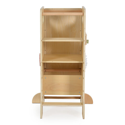 A Moni Toys Big Ben egy multifunkcionális fa tanulótorony, amelyet úgy terveztek, hogy a gyermekkel együtt növekedjen, és ötvözze a tanulást, a játékot és a praktikumot. Könnyen átalakítható több hasznos modulra, ösztönözve az önállóságot, a kreativitást és a motorikus képességek fejlődését. 4 az 1-ben funkciók: 1. Oktatótorony – stabil platform 3 szintű állítható lépcsővel, amely lehetővé teszi a gyermek számára, hogy biztonságosan elérje a magas felületeket, és részt vegyen a főzésben vagy más háztartási tevékenységekben. 2. Csúszda – könnyen átalakítható szórakoztató csúszdává, ösztönözve az aktivitást és a motorikus képességeket. 3. Rajztábla – a beépített Montessori panelekkel a gyermek rajzolhat, írhat és szórakoztató módon fejlesztheti finom motorikus képességeit. 4. Étkezőszék – stabil kiegészítő szerelhető a platformra, így a torony kényelmes és biztonságos étkezőszékké vagy asztali tevékenységekhez használható székgé válik. További előnyök: • Montessori panelek mindkét oldalon a logikai gondolkodás és a kreativitás fejlesztése érdekében. • Órapanel az órák könnyű és szórakoztató elsajátításához. A Big Ben a mindennapokat kalanddá varázsolja – biztonságos és inspiráló módja annak, hogy a gyermek önállóan tanuljon, játsszon és növekedjen.