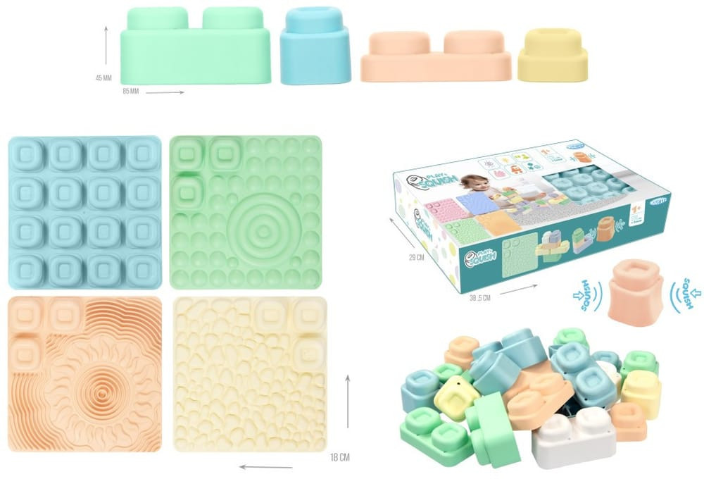 MOCHTOYS Play&Squish szenzorikus szőnyeg - tapilap+ kockák NAGY szett 24+4db PASZTELL