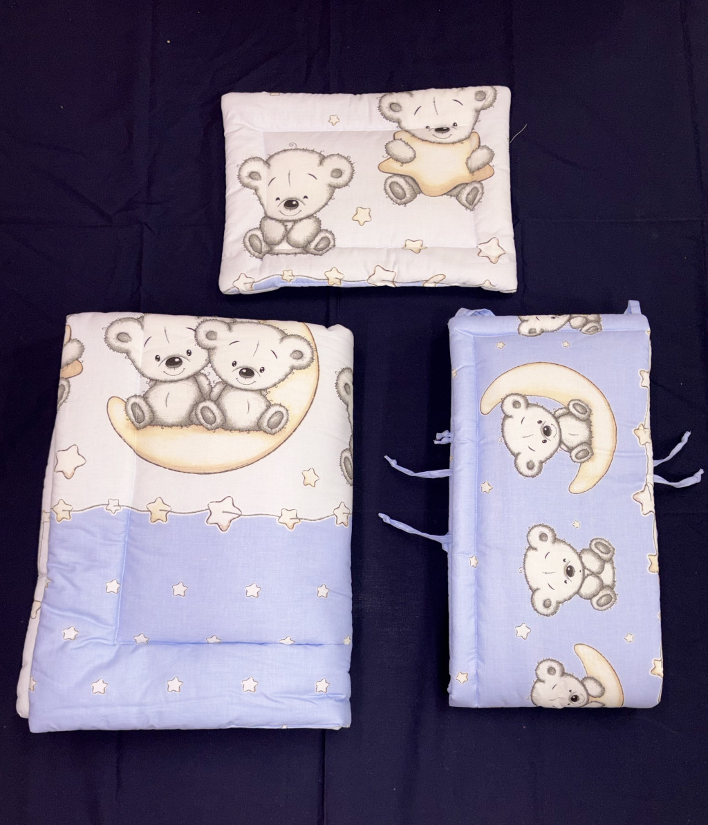 Ez a 3 részes ágynemű garnitúra kifejezetten kiságyba, újszülöttek és csecsemők számára készült szett. Az alábbiakban találod a részek részletes leírását: