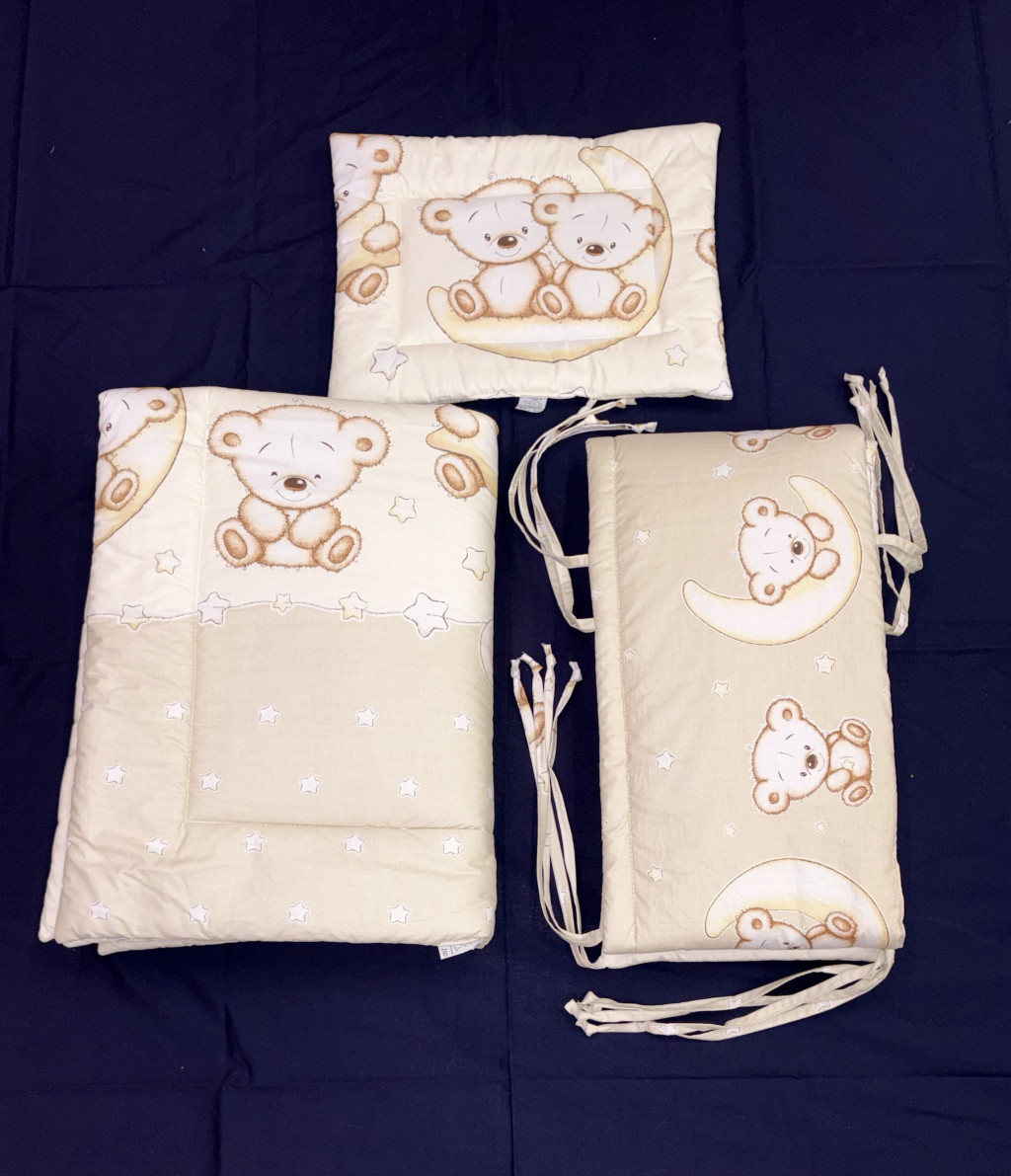Ez a 3 részes ágynemű garnitúra kifejezetten kiságyba, újszülöttek és csecsemők számára készült szett. Az alábbiakban találod a részek részletes leírását: